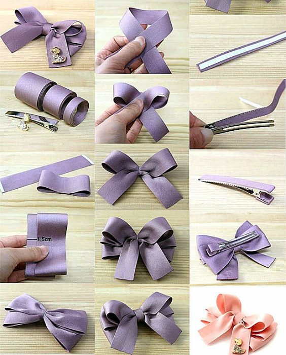 Украсьте свои обыкновенные заколки очаровательными бантиками из атласной ленты.
