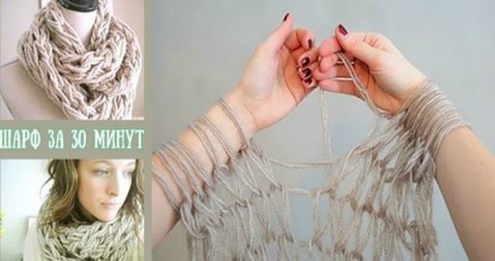Модный шарф, который можно сплести из толстой пряжи за пол часа.