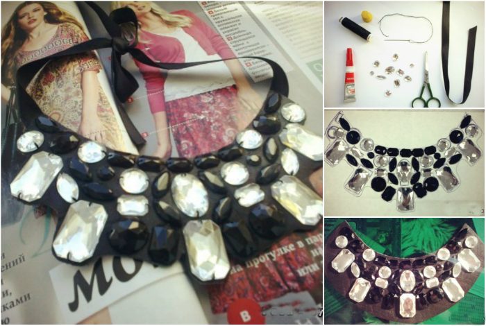 Потрясающее колье, которое можно сделать из куска кожи, фурнитуры и ленты.