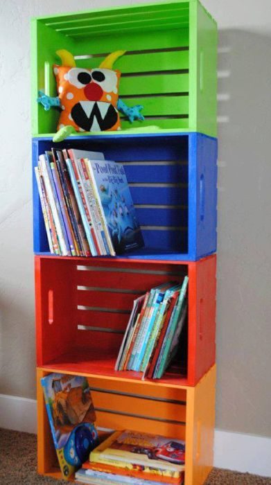 8. Стеллаж из ящиков в детской