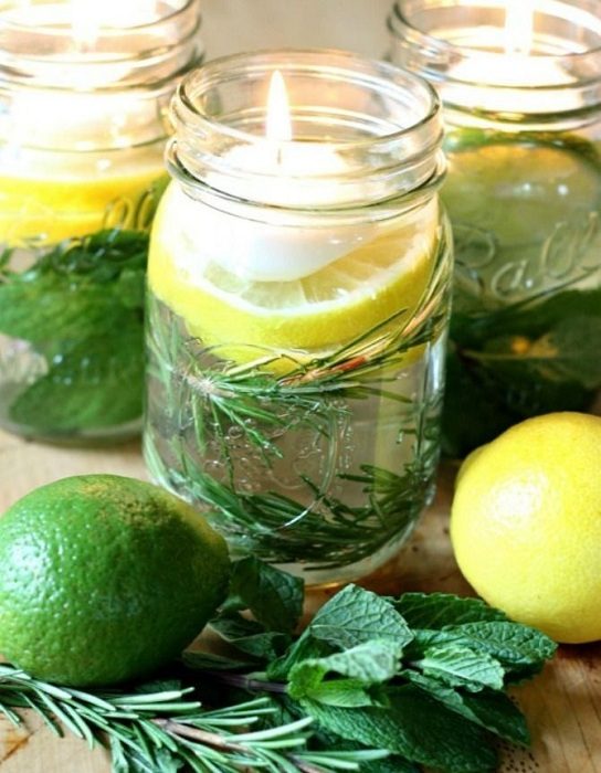 Из обычной баночки, фруктов и трав можно создать красивый подсвечник.