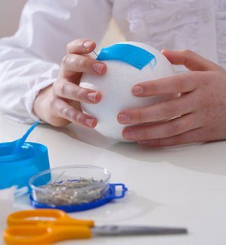 Нитки нужно обмакнуть в клей ПВА и аккуратно обмотать ими надутый воздушный шар. После того, как подсохнет, воздушный шар сдуть.