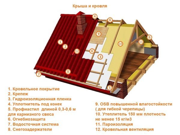 В качестве кровли можно использовать волнистый шифер, натуральную черепицу, профилированный металл, ондулин или мягкую черепицу. Конек и излом крыши покрываются особыми фасонными деталями.