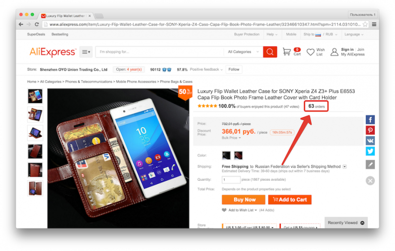 В той же строке, что и рейтинг каждого отдельного товара, всегда находится параметр, показывающий, сколько человек уже купило этот лот. На этот параметр тоже имеет смысл обращать внимание при выборе. Логично, что плохая, некачественная вещь не будет продаваться тысячами экземпляров. Хотя бы в силу того, что будет иметь очень низкий рейтинг и кучу отрицательных отзывов покупателей. Исключение – новые, только что появившиеся в продаже товары.