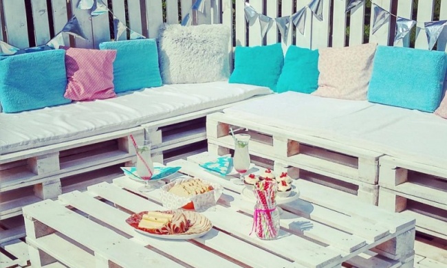 Расставьте поддоны по местам. Можно разложить на них яркие подушки.