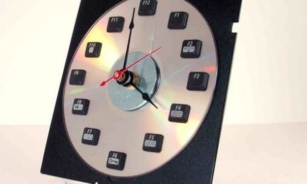 Если в доме есть старая компьютерная клавиатура, которую пора отправить на свалку, и старые часы, то можно создать уникальный и функциональный предмет интерьера. Достаточно разместить на циферблате компьютерные кнопки так, как считаешь нужным. Это позволит оформить интерьер без лишних трат.