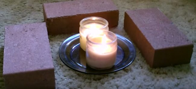 4. Зажги свечи. Установи их на тарелку между кирпичами.