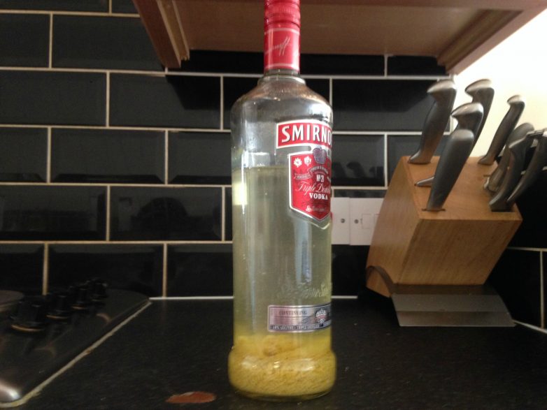 Спустя две недели (в течение которых необходимо каждый день встряхивать бутылку, для лучшего впитывания лимонного вкуса) процедите водку