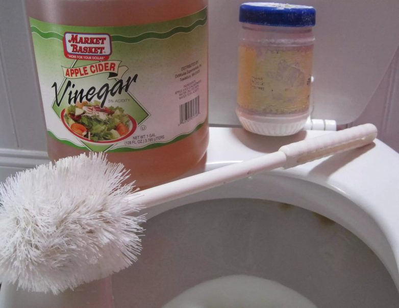 Вы удивитесь, но чтобы унитаз блестел, его не нужно заливать “Доместосом”. Хватит и простого белого уксуса. Обработайте им унитаз и ёршиком распределите средство. Оставьте примерно на час, после чего снова поработайте им. Смойте. Для особенно въевшихся пятен повторите процедуру до 3 раз.