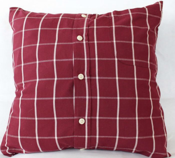 Обновите скучные диванные подушки, «надев» на них старые рубашки.