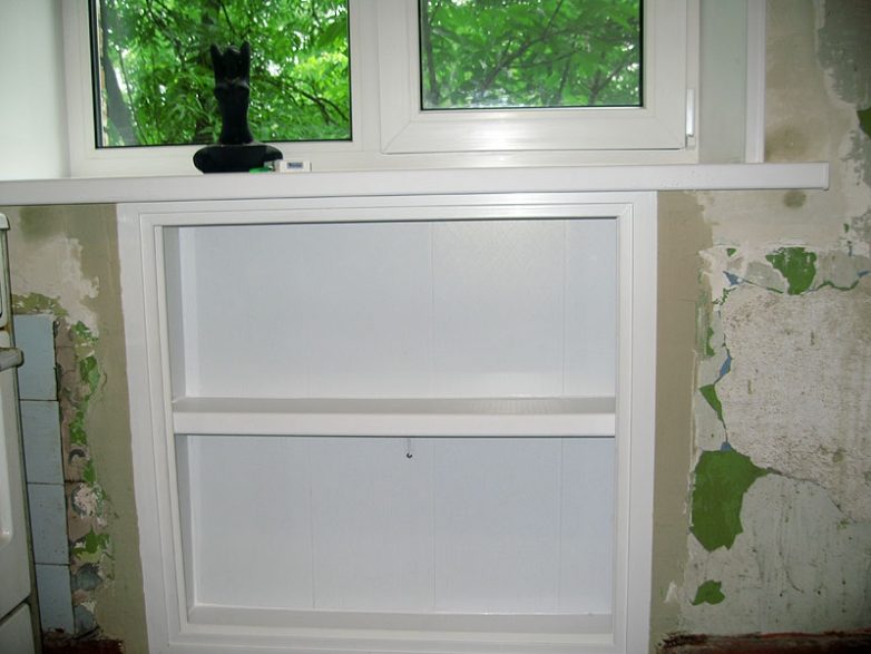 Достаточно обширный ящик под столь же широким и необъятным подоконником позволил народу хоть в зимнее время года хранить часть скоропортящихся продуктов в прохладном и легкодоступном месте. Именно о том, как переделать хрущевский холодильник своими руками, и пойдет дальше речь.