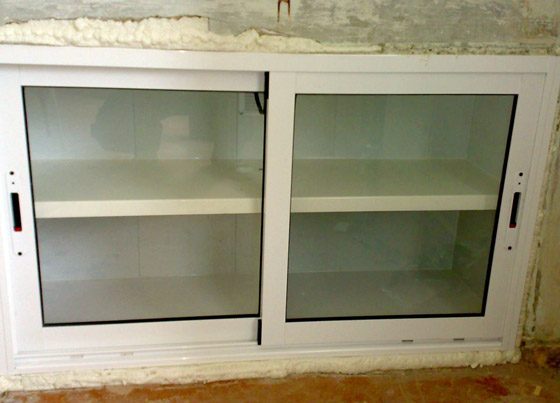 Фактически в результате получается пластиковый хрущевский холодильник. Выполнив обшивку внутри из пластика, и вовсе получается хороший ухоженный вид, недалекий от такого же в настоящем холодильнике. Главное не поскупиться на установку нормальной системы замка раздвижных створок с доводкой. Потому как такая система значительно уступает по теплоизоляции обычным распашным системам пластиковых окон и дверей. Не до конца закрытая створка приведет к сильному сквозняку холодного воздуха по ногам.