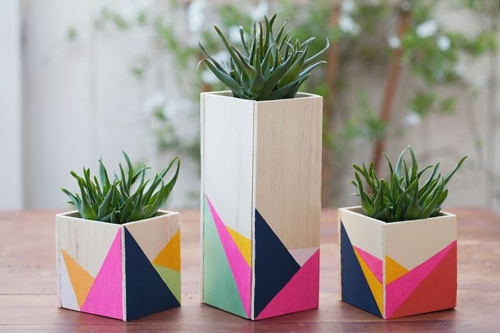 Раз уж речь зашла о цветах, то мы просто не можем не упомянуть идеи для цветочных горшков. Их можно декорировать разноцветным скотчем, покрасить акриловыми красками, сплести для них милые подвесные кашпо и даже сделать фанерную «облицовку».