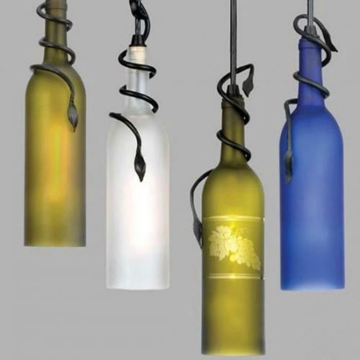 Оригинальные плафоны для люстры из ненужных винных бутылок.
