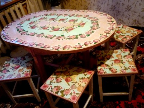 Способ второй – декупаж (оклейка мебели декоративными салфетками).