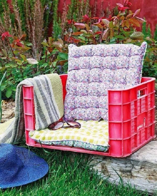 Для создания такого кресла со спинкой, нужно всего лишь отпилить переднюю часть ящика.