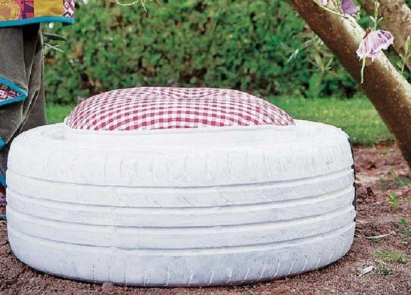 Прикрепите к шине подушку и получится отличный мягкий пуф.