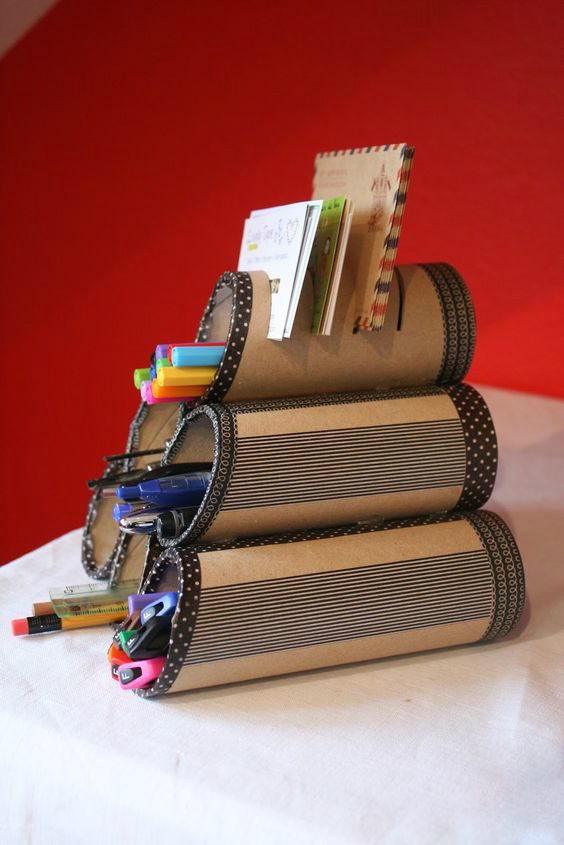 Вот, пожалуй, самый простой органайзер для канцтоваров: просто вставьте втулки в картонную коробку и рассортируйте принадлежности по ячейкам!