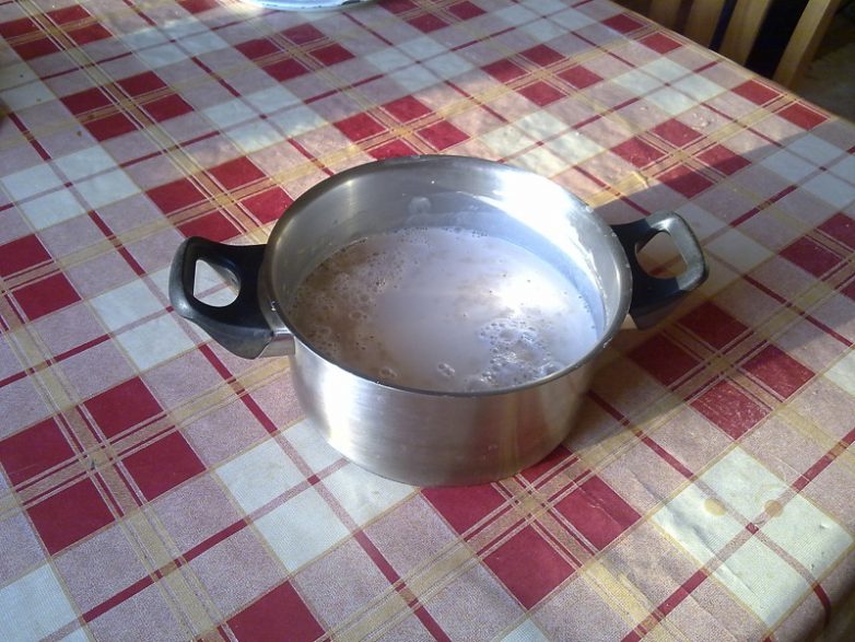 Дрожжи разводятся в теплой воде и заливаются в последнюю очередь