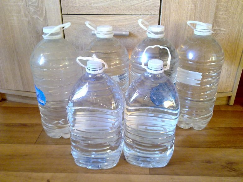 Посудой послужили три стеклянные двадцатилитровые бутыли с пробками, приспособленными для гидрозамка.