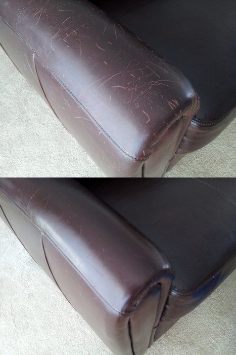 Если в вашем доме уживаются одновременно кожаные кресла и домашние животные, рано или поздно вы столкнетесь с ними – царапинами. Косметическое решение проблемы наверняка уже есть на вашей кухне. Это – оливковое масло. Как следует пропитайте мягкую тряпку и активно, круговыми движениями, втирайте его в места боевых ранений. Главный секрет – не жалеть масла и тщательно обрабатывать им поверхность. О жирном блеске не беспокойтесь: избыток живительной жидкости легко впитать и вытереть бумажными салфетками.