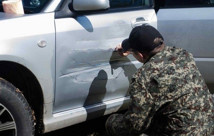 Рассказ от первого лица: На фотографии видно, как сосед бесцеремонно въехал в мою небито-некрашеную. Виновник купил дверь и заплатил за необходимые работы.