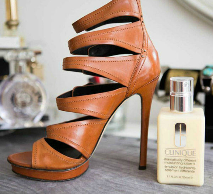 Время от времени кожаную обувь можно смазывать увлажняющим кремом для лица. Такая процедура смягчит пересохшую поверхность обуви и добавит ей блеска.