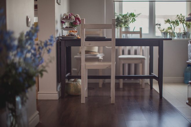 Относитесь к дереву философски. Оно живет вместе с вами, а трещинки или дефекты, возникшие при эксплуатации придают ему особый шарм. Если вы не находите удовольствия в потертом паркете, выбирайте материал под покрытие маслом. Тогда вы сможете сами, в домашних условиях обновлять и реставрировать пол. Либо, чтобы не бороться с неизбежным старением доски, сразу купите состаренный или брашированный (процарапанный металлическими щетками для выраженной фактуры) материал.Еще одна тенденция, которая мне очень симпатична — это использование амбарной доски (разобранная доска из старых построек). Это устоявшийся природный материал, законсервированный временем и имеющий ярко выраженную фактуру. Да, это удовольствие не из дешевых, но зато этот пол будет вечен. Не говоря уже о том, что, используя старую вещь, мы экономим природные ресурсы — экологи нам скажут спасибо.