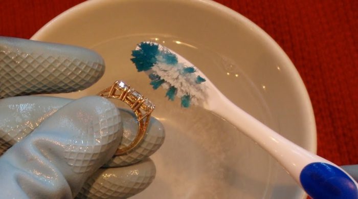 Потом аккуратно почистить украшения зубной щеткой с мягкой щетиной