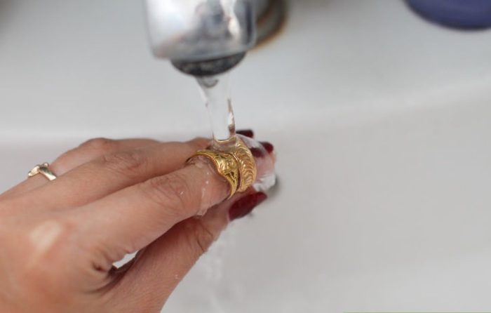После этого промыть золотые украшения под проточной теплой водой