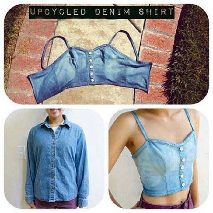 Не выбрасывайте старую джинсовую рубашку, превратите ее в прекрасный летний топ. Сделать его можно самостоятельно, имея швейную машинку и навыки работы с ней, или воспользовавшись услугами ателье.