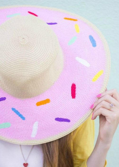 Обыкновенную соломенную шляпу можно превратить в яркий и уникальный головной убор. Просто разукрасьте поля шляпки, используя текстильный краситель.