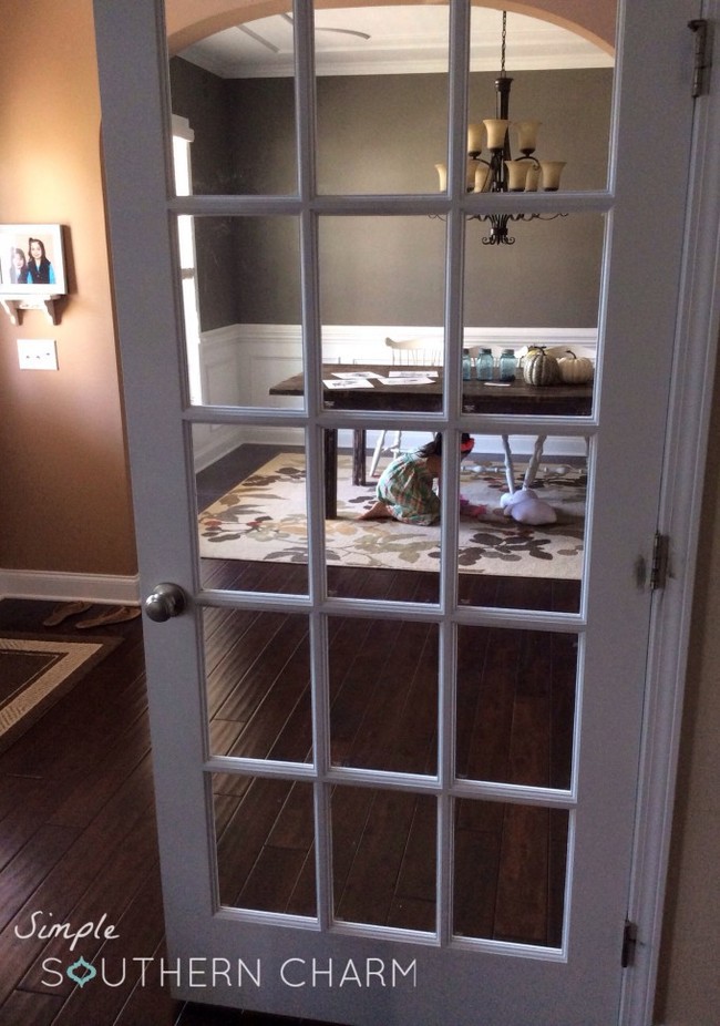 В данном мастер-классе прозрачная витражная краска используется только с одной стороны, но для большей достоверности вы можете проделать то же самое и с обратной стороны двери.