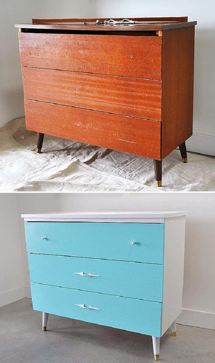 Цвет меняет всё! Не откажусь от такого лазурного комода…