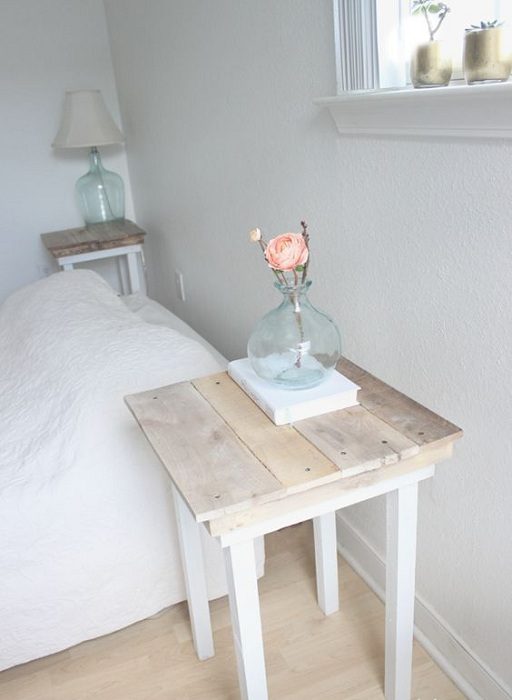 Отличный вариант оформления мини-столешницы у кровати в обычном и простом стиле.