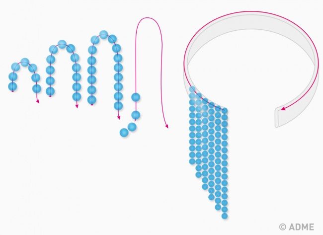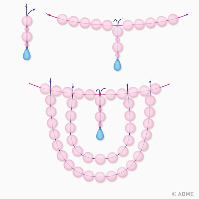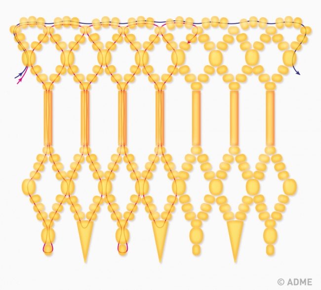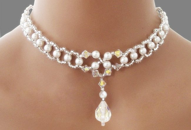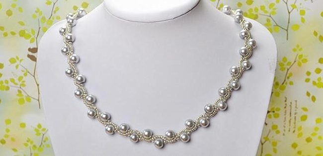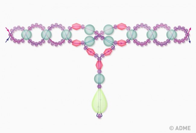 Несмотря на объемный рисунок, плетение очень простое и включает всего 2 компонента. Это ожерелье, безусловно, будет соответствовать моменту, когда нужно выглядеть женственно и элегантно.