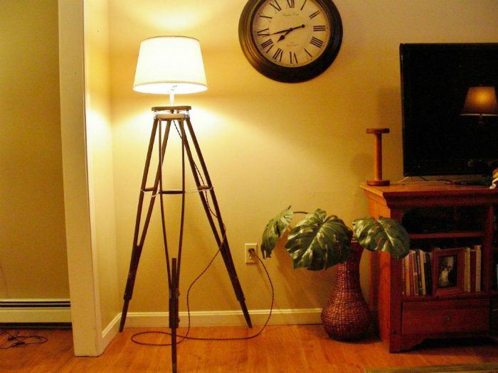 Вместо того, чтобы хранить ненужные костыли в углу или в чулане, сделайте из них оригинальный и стильный штатив для напольного торшера, который станет уникальной деталью современной гостиной.