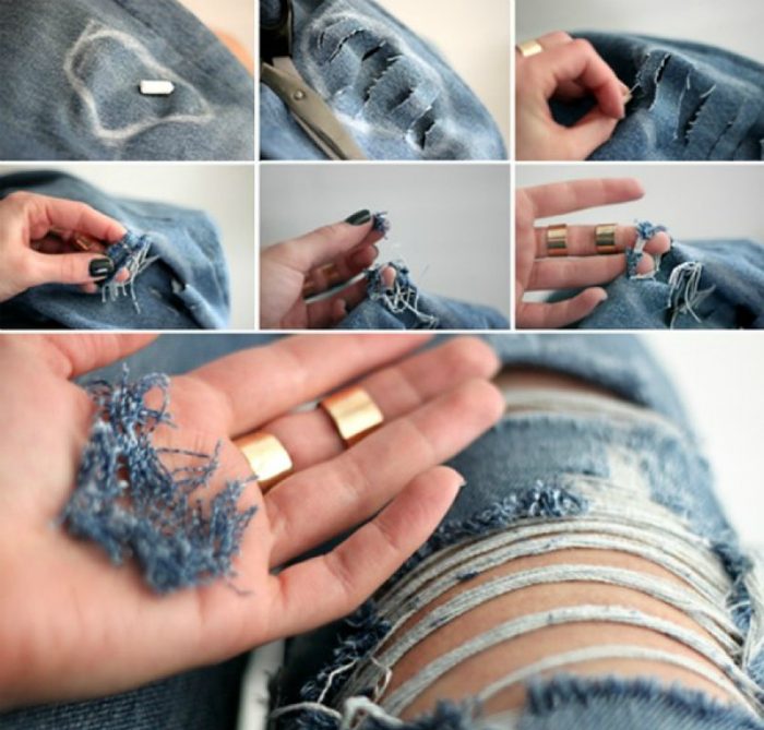 Похоже, рваные джинсы никогда не покинут страницы модных журналов. Так, что вооружившись канцелярским ножом, терпением и фантазией, начинайте вырезать небрежные дырки на стареньких штанах.