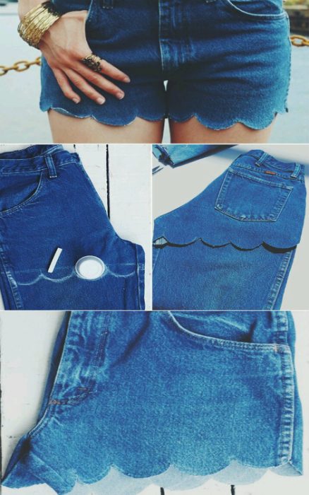 Трансформация старых джинсов буквально за пять минут. Нарисуйте мелом волнистую линию и аккуратно обрежьте по ней штанины.