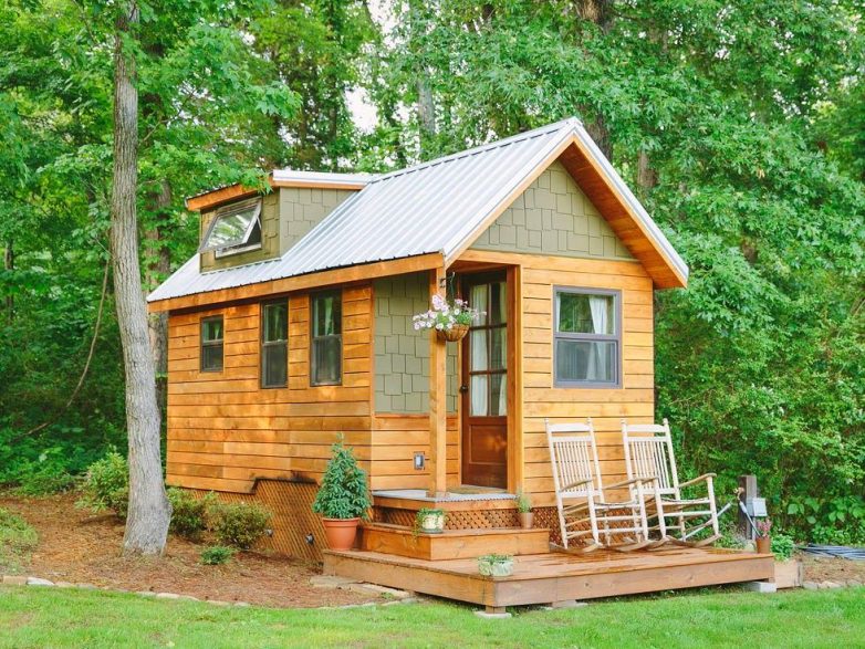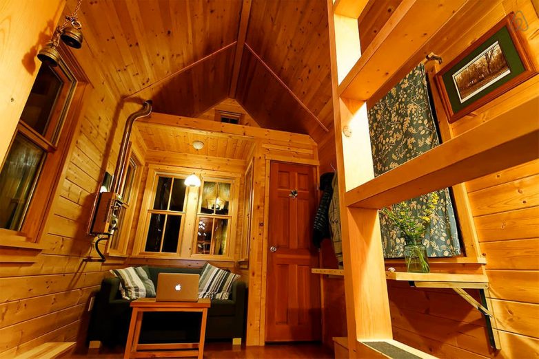 Всем поклонникам букваря и просто тем, кто любит миниатюрные дома, представляю хижину в форме буквы А. Несмотря на свой маленький размер (всего 6 квадратных метров, а с поднятой стеной — 9) здесь помещается две кровати — они же полки, а также кухня, раковина и мини-холодильник. Стоит такое чудо 1 200 долларов и монтируется за один день.