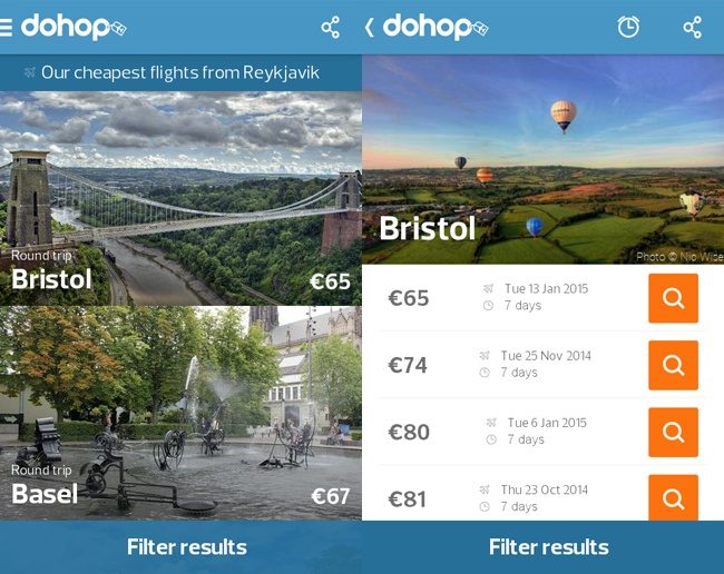 Интернет-платформа поможет организовать спонтанный и недорогой полет. Dohop найдет расписание рейсов из аэропорта, который расположен рядом с вами, и предложит варианты по возрастанию цены.
