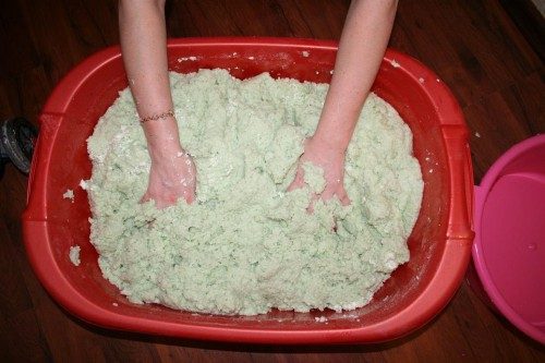 раствор перемешивается руками до тех пор, пока не получится однородная масса;