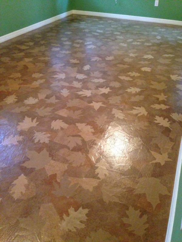 У меня пол в одной комнате затянут ситцем (на бордовом фоне огромные желтые и оранжевые цветы) и покрыт лаком. С 1972 года обновляли лак 2 раза. Настолько необычно, что рука не поднимается поменять на линолеум или ламинат…