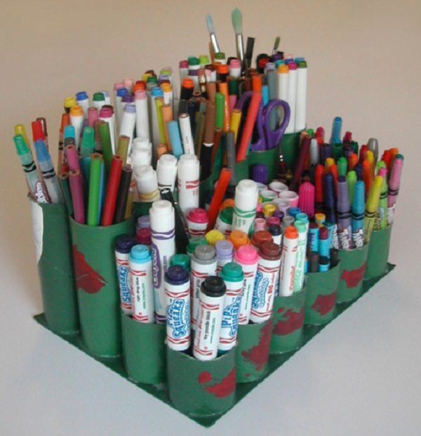 Вот, пожалуй, самый простой органайзер для канцтоваров: просто вставь втулки в картонную коробку и рассортируй принадлежности по ячейкам!