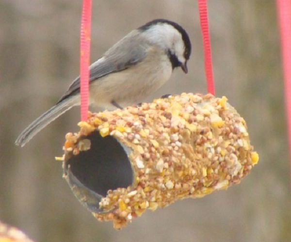 Позаботься о пернатых друзьях, смастерив простейшую кормушку. Вымажь втулку сахарным сиропом или мёдом и обваляй ее в зернышках.