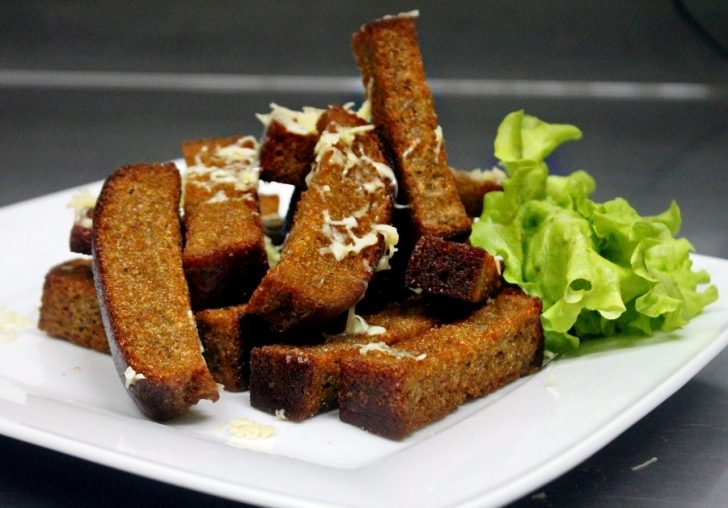 Для тех, кто не доверяет сухарикам из магазина, эта легкая и бюджетная закуска – отличный вариант.