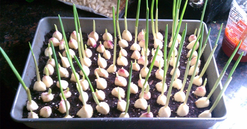 Поставьте горшок на подоконник, чтобы на чеснок падал солнечный свет 8 часов в сутки.