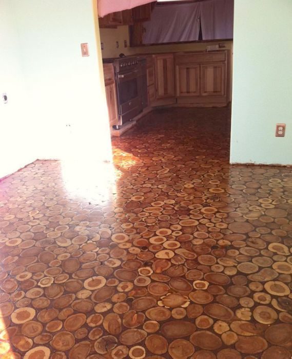 Шаг 5. Последний этап — покрытие пола полиуретановыми пластинами. Результат — натуральный пол с интереснейшей структурой.