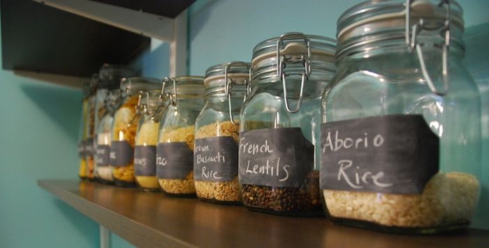 Банки настолько универсальны, что могут использоваться даже для хранения специй или сыпучих продуктов. Для удобства их желательно подписать, используя грифельную краску или просто бумажные этикетки.