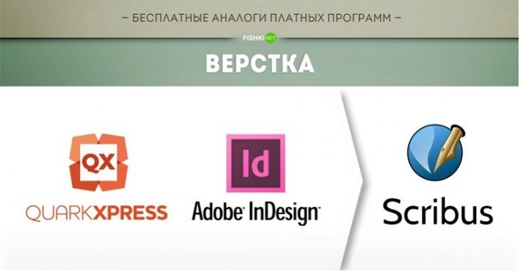 Верстка: платный QUARKXPRESS Adobe InDesign — бесплатный Scribus